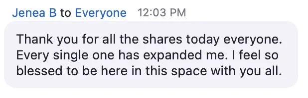 “These circles are such gifts! They are filled with mutual respect, support and care. And because people are so open, beautiful synchronicities are appreciated and even learned from. The collective energy and reflection of our states allows me to process what’s simular in me. The way the Circle is lead allows this processing to come gently and collectively. I’m so glad to have found this community!.”